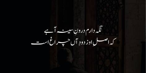 اس شعر میں علامہ اقبال اپنی تنہائی، اپنی فکر اور اپنی امید کے ماخذ کا تذکرہ کر رہے ہیں۔ وہ فرماتے ہیں کہ میں نے اپنے سینہ کے اندر ایک ایسی آہ (درد اور تڑپ) کو سنبھال کر اور نگہ (حفاظت) کر کے رکھا ہوا ہے، جس کی اصل (بنیاد یا جڑ) اس چراغ کے دھوئیں (دود) سے ہے جو (محفل کے ختم ہونے کے بعد) بجھ چکا ہے۔