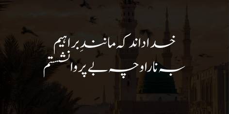 Yahan Iqbal apni roohani aag ko Khuda ke faiz ka nateeja batate hain۔ Woh kehte hain ke un ki tپش Zamzam ki mauj jaisi hai aur un ki fقیری hi un ki saltanat hai، kyun ke un ka dil Khuda ka mehram hai۔