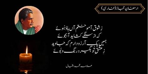 Is aag se jis ne meri rooh ko roshan aur munawwar kar diya hai, is ka ek hissa in Musalman zadon ki qismat mein bhi kar de taake woh bhi faizyab ho sakein.