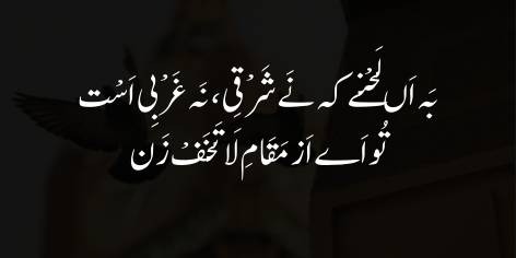 بَہ اَں لَحْنے کہ نَے شَرْقِی، نَہ غَرْبِی اَسْت