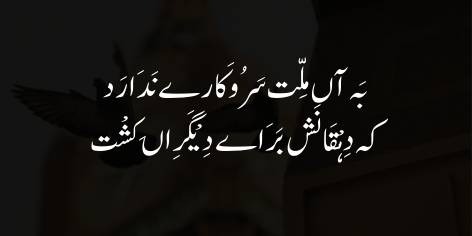 بَہ آں مِلّت سَرُوکَارے نَدَارَد