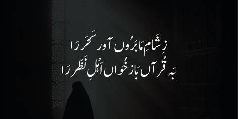 Ae millat ki beti! Tu apni himmat aur iman se hamari is zaboon-haali (raat) ko kamyabi ki subha mein badal de. Tu ahl-e-baseerat ko dobara Quran ke paigham ki taraf bula. Kya tu bhool gayi ke ek behen (Hazrat Fatima binte Khattab) ki Quran khwani ke soz ne hi Hazrat Umar Farooq (R.A) jaise sakht-dil insan ki taqdeer badal di thi aur wo Islam ke azeem sipahi ban gaye thay. Teri awaz mein aaj bhi wahi taseer paida ho sakti hai.