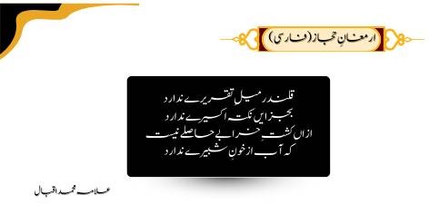 This Qalander has no desire for long speeches; he possesses no alchemical secret (essence) other than this single point: No harvest can ever be gathered from that desolate field which is not irrigated by the blood of a Shabir (the sacrifice of Imam Hussain).
