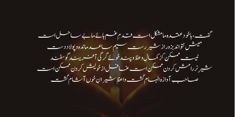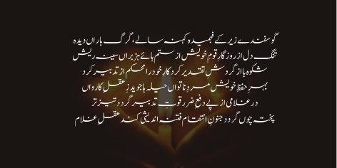 Shikwa ba az gardish-e-taqdeer kard, kaar-e-khod ra muhkam az tadbeer kard.