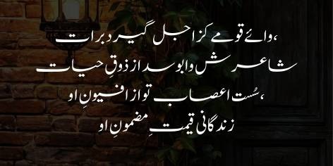 اقبال اس قوم پر افسوس کرتے ہیں جو ناامیدی اور موت کے فلسفوں میں سکون تلاش کرتی ہے۔ ایسے معاشرے کا شاعر زندگی کی حقیقتوں سے فرار سکھاتا ہے اور اس کی شاعری افیون (نشے) کی طرح ہوتی ہے جو قوم کے اعصاب کو ڈھیلا کر دیتی ہے۔ اس قسم کی شاعری پڑھنے کا نتیجہ یہ نکلتا ہے کہ انسان جینے کی امنگ کھو دیتا ہے۔