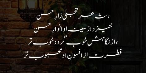 Ek sacha sha’ir wo hai jis ka dil husn aur haqiqat ka aaina-dar ho. Us ke kalam se aisi roshni phoot-ti hai jo aam cheezon ko bhi khubsurat bana deti hai. Sha’ir ki nazar mein wo jadu hai jo kainat ke chupe hue husn ko nikhaar kar pesh karta hai, jis se insan ko qudrat aur fitrat se mazeed mohabbat ho jati hai.