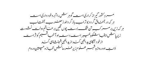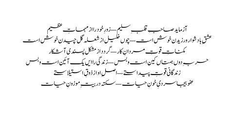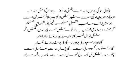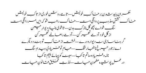 Zindagi kisht ast o hasil quwwat ast, sharh-e-ramz-e-haq o batil quwwat ast.