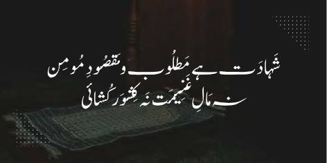 This couplet clearly articulates Allama Iqbal’s philosophy of Jihad and the true objective of the Momin (believer). Iqbal states that the ultimate objective and desire (Matloob-o-Maqsood) of the true Momin is solely Shahadat (martyrdom), sacrificing one’s life in the way of God; this is both their life’s purpose and their greatest ambition.