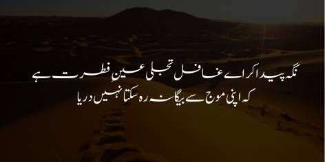 Iqbal Bal-e-Jibril mai kehte hain ke ishq, khudi aur roohani sha’oor ka junoon fitrat ki hadon se bhi baala hai. Insaan agar khud ko pehchan le, toh usay Allah ki haqeeqat samajh aa sakti hai. Magar yeh raah mushkil hai — sirf be-niyaz, ishq mein dooba hua dil hi samajh sakta hai.