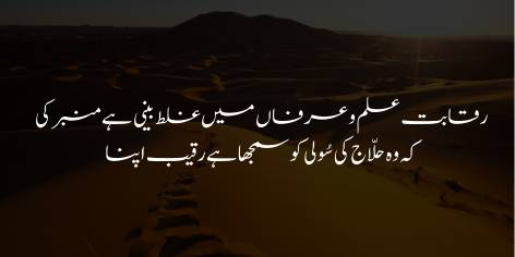 Woh Mansoor bin Hallaj ki suli ko apna dushman samajhte hain. Yaani, zahiri ilm rakhne wale in ulama ne ghalat fehmi ki wajah se Hallaj ko apna dushman samajh liya.