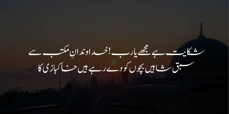 Is ibarat mein Allama Iqbal darsgahon ke asatiza ke bare mein Allah Ta’ala se shikwah karte hain.