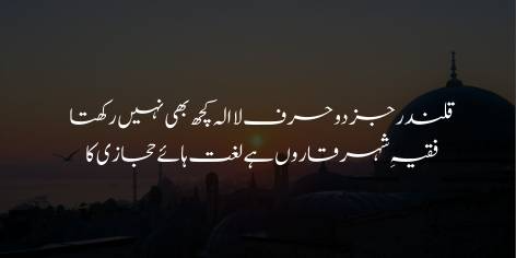 اس عبارت میں علامہ اقبال کہتے ہیں کہ مجھ جیسے درویش اور فقیر کے پاس تو صرف “لا الٰہ” کا کلمہ ہے (یعنی اللہ پر ایمان کی سادگی)۔