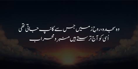 Yeh woh sajde the jin ki taqat se kabhi zameen bhi hil jati thi. Yaani un sacche sajdon ki ab kami ho gai hai jo Musalmanon mein taqat aur iman ki alamat the.