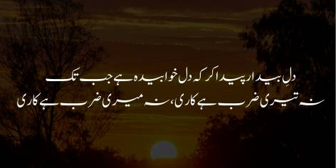 علامہ اقبال پچھلے شعر کا حوالہ دیتے ہوئے مسلمانوں سے کہتے ہیں کہ جب تک تمہارا دل بیدار نہیں ہوتا اور سویا ہوا ہے، یہ سمجھ لو کہ نہ تمہارا وار دشمن کے خلاف کارآمد ہوگا اور نہ ہی میرا وار۔