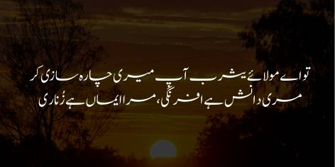 Is ibarat mein Allama Iqbal Allah Ta’ala se mukhatib ho kar poochhte hain ke “Aey mere haqeeqi malik! Aaj ke zamane mein toh darweshi bhi dhoke se khali nahi hai aur badshahat bhi fareb ke siwa kuch nahi hai.”