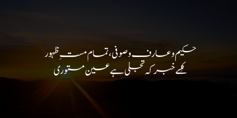 Allama Iqbal kehte hain ke Hakeem, Arif aur Sufi sab Allah ke jalwe (zahoori) ko dekhne ki dhun mein mast hain. Lekin kisi ko yeh khabar nahi hai ke Allah ka jalwa darasal uske parde (masturi) mein hi hai. Yaani Khuda ki azmat uske zahir hone mein nahi balkeh uske chipe hone mein hai.