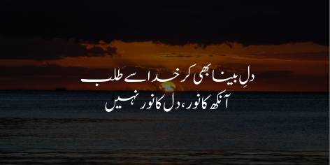 Is ibarat mein Allama Iqbal kehte hain ke Allah Ta’ala se woh basirat (dil ki aankh) bhi zaroor maangni chahiye jis se dil roshan ho sake.