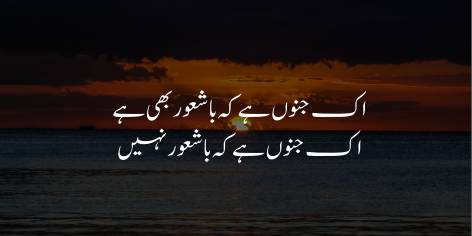 ایک جنون وہ ہے جس میں انسان کے ہوش و حواس اور شعور قائم رہتے ہیں۔