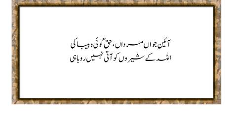 Is ki wajah yeh hai ke aise log toh sheron jaisi fitrat ke maalik hote hain, jin mein loomriyon ki tarah buzdili aur makkari ka zara sa bhi shuba nhi hota.