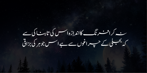 Shair kehte hain ke “Is se bari be-waqoofi (hamaqat) kya hogi ke tum Maghrib ki tehzeeb ki khoobiyan sirf uski zaahiri chamak damak ki wajah se bayan kar rahe ho.