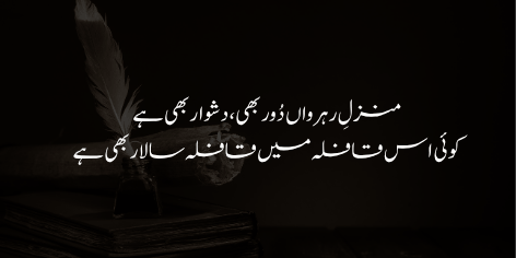 Shair kehte hain ke “Is shair mein bhi pichle shair ki tarah yeh soorat-e-haal hai ke be-amali ki wajah se qafile (qaum) ki manzil ab aur zyada mushkil ho gayi hai” aur “us tak pahunchne ke imkanaat bhi nazar nahi aate.