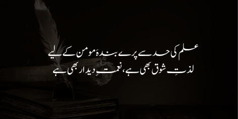 “Lekin Momin (sacche Musalman) ke liye sirf Ilm hi kaafi nahi hai, balkeh Ishq-e-Haqeeqi (Allah aur uske Rasool se saccha aur gehra lagao) bhi bohat zaroori hai,