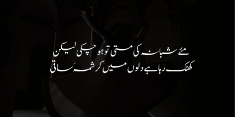 “Lekin Saaqi (sharaab pilane waale, murad: roohani rehnuma ya mehboob) ki inayaat aur nawazishon ka asar (karishma) abhi tak mere dil o dimagh mein mehfooz hai”.