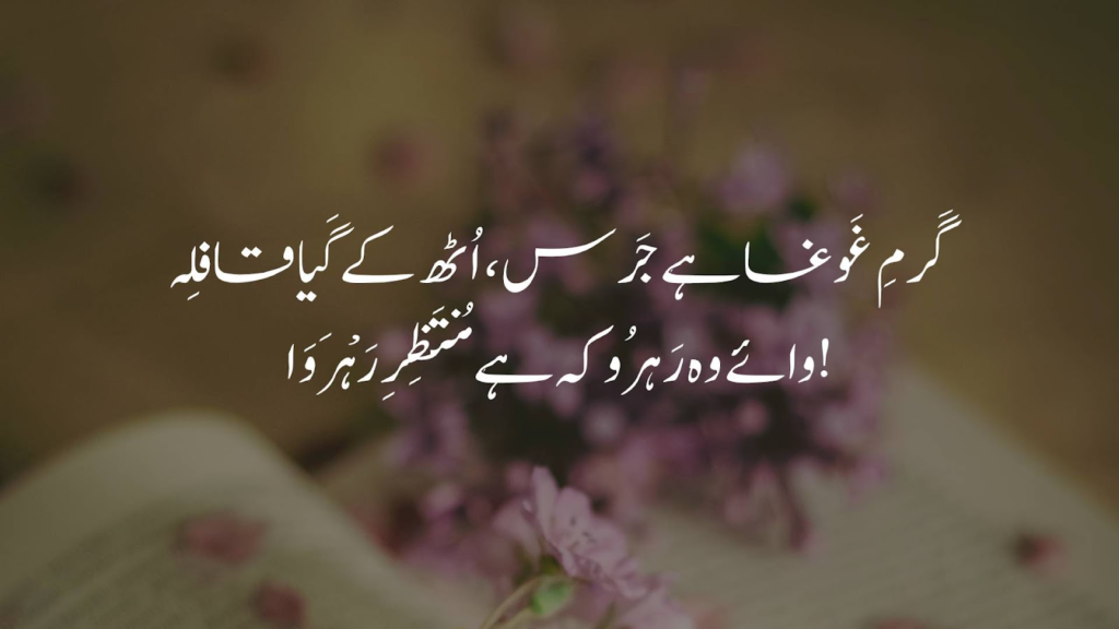 علامہ اقبالؒ اس شعر میں عمل کی فوری ضرورت کو بیان کرتے ہوئے کہتے ہیں کہ قافلہ (یعنی زندگی کا سفر یا ملت کی بیداری) تو پورا شور و غوغا اور تیاری کے ساتھ منزل کی طرف روانہ ہو چکا ہے، اور جرس (گھنٹی) بھی بج کر روانگی کا اعلان کر چکی ہے۔ اس صورتِ حال میں شاعر انتہائی افسوس (وائے) کا اظہار کرتے ہیں اس مسافر (رَہْرُو) پر جو ابھی تک اُٹھا نہیں ہے اور خاموشی سے دوسرے مسافروں (رَہْرَوَا) کے آنے کا انتظار کر رہا ہے۔ اقبال کا پیغام یہ ہے کہ جب وقت آگے بڑھ چکا ہو تو کسی کے سہارے یا انتظار میں بیٹھنا بدقسمتی ہے، بلکہ فوری طور پر جدوجہد شروع کر دینی چاہیے۔