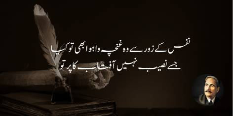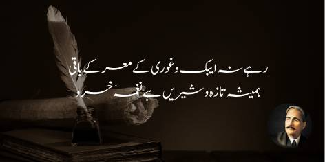 Laale ka phool aam baaghon ki mehdood fiza mein nahi khulta. Woh toh aik khud-rau phool hai, jo apni khoobsurati aur shaan sirf sehraon aur pahaadon (kohsaar) ki wasee’ fiza mein hi dikhata hai. Baaghon ki qaid uski nash-o-numa ke liye saazgaar nah.