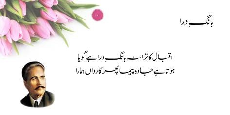 علامہ اقبال کہتے ہیں کہ میں نے جو یہ ملی ترانہ لکھا ہے، یہ قافلے کی روانگی کی گھنٹی (بانگِ درا) کی طرح ہے۔ گویا اس الارم کے بجتے ہی ہمارا یہ قافلہ (ملت اسلامیہ) ایک بار پھر سے اپنے سفر اور منزل کی طرف سرگرمِ عمل ہو گیا ہے۔