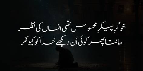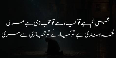 Yeh aisī bāt hai jo tere shāyān-e-shān nahīn, lekin iss sūrat-e-hāl ko dekh kar dil majbūr hai ke yeh keh de ke Ay Khudā! Tū ne bhī apnī tawajjuh aur mohabbat ko sirf ham par makhsūs nahīn rakhā, balkeh ab tū sab par meherbān hone kī wajah se “harjā’ī” (jiss kī tawajjuh ek jagah na rahe) ho gayā hai.