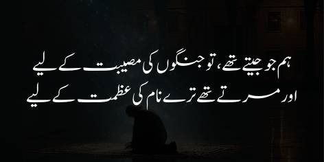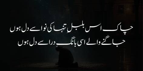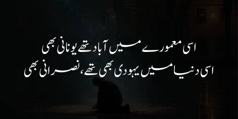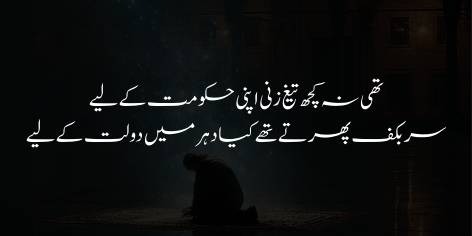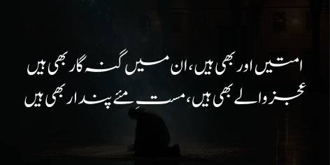 Aur woh qaum jo iss waqt intishār (bikhra’o) aur be-bazā’atī (be-sar-o-sāmānī) kā shikār hai, usay ek bār phir wohī shān-o-shaukat aur ‘izzat atā kar jiss kī woh māzī mein hamesha se mustahiq rahī hai.
