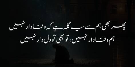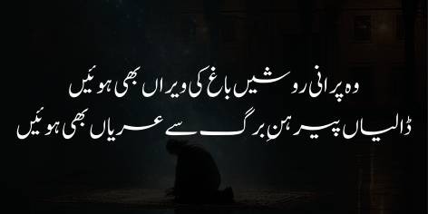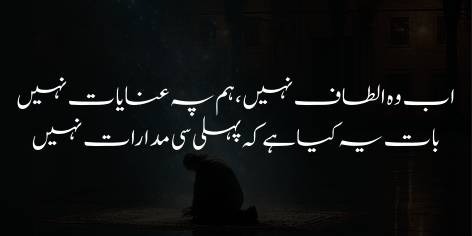 Shā’ir yeh shikwa bhī kartā hai ke shāyad hamārī hālat itnī kharāb aur hamārā dil (ghar) itnā barbād ho chukā hai ke ab tū wahāñ (hamāre dilōñ mein) apnī raunaq aur nūr se qiyām karnā (raunaq afrooz honā) pasand nahīn kartā.
