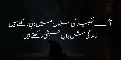 شاعر انتہائی پرجوش انداز میں اپنی بات ختم کرتے ہوئے کہتا ہے کہ قوم کی اس ناگفتہ بہ حالت اور زوال کی صورتِ حال کے باوجود، میرے سینے میں بے شمار ولولے، امنگیں اور نئے جذبات تڑپ رہے ہیں۔ اور یہی میرا سینہ ہے جو (خدا کی محبت کے) ہزارہا جلووں اور انوار کا ٹھکانہ (مسکن) بنا ہوا ہے۔ (یعنی شاعر مایوس نہیں ہے اور اس کے اندر ایک نئی امید کا شعلہ روشن ہے)۔