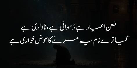 Shā’ir isay shadeed Qayāmat (baṛī musībat) se ta’bīr karte hue kehtā hai ke iss se ziyāda burā waqt aur kyā ho gā ke hum khud hī apnī bunyādōñ aur jaṛōñ ko khodne par tule hue hain (ya’ni Musalmān apnī kamzoriyōñ aur ghaddāriyōñ se apne hī zawāl kā sabab ban rahe hain).