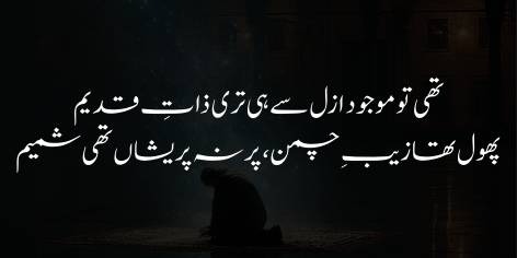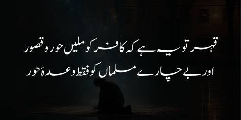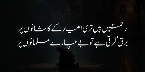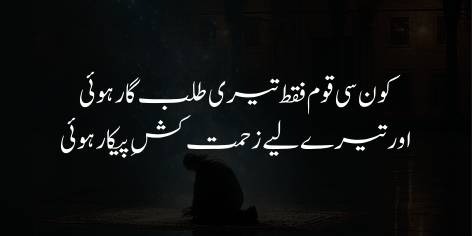 Jab ke iss ke bar’aks, tere chāhne wāle Musalmān to khud ko terī ne’matōñ se mehrūm samajhne lage hain aur terī meherbāniyōñ ke ishārōñ ke shadeed muntazir hain.