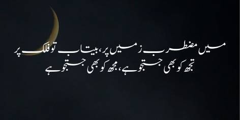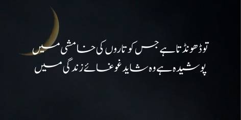 Ay chānd! Yūñ lagtā hai ke tū jiss cheez (yā hasti) ko tārōn ki khāmoshi aur sukūt mein talāsh kar rahā hai, woh ghāliban yahāñ kurra-e-arz (zameen) par zindagi ke shor aur hangāmōn mein chupi huī hai.