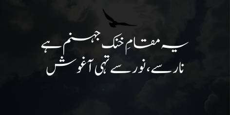 علامہ اقبال نے اسی حوالے سے ایک دوسرے زاویے سے یہی بات کہی ہے۔ ان کا نقطہ نظر یہ ہے کہ دوزخ بذاتِ خود گرم نہیں ہے، بلکہ جب برے عمل کرنے والے اور گنہگار لوگ وہاں بھیجے جاتے ہیں تو ان کے بُرے اعمال ہی شعلے بن کر انہیں جلاتے ہیں۔