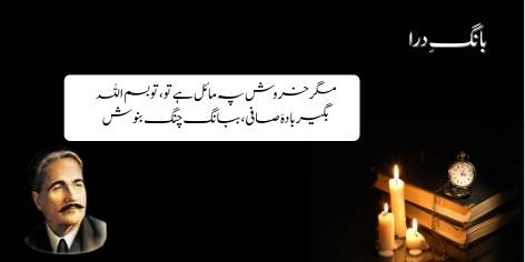 Lekin agar tumhārā dil phir bhī shōr machāne aur ḥarkat mein āne ko chāhtā hai tō “Bismillah” karo aur is rāste par chal paṛo. Magar is shōrish ke liye dunyāwī lazzatein zarūrī hain: khāliṣ sharāb ḥāsil karo aur sāz (chang) kī buland āwāz ke sāth use pī kar hōsh khō do. (Yahāñ Iqbāl tanziyah andāz mein batāte hain ke ‘amal se dūr reh kar hangāmah karne kā rāstah sirf ‘aish-o-mastī kā ho saktā hai).