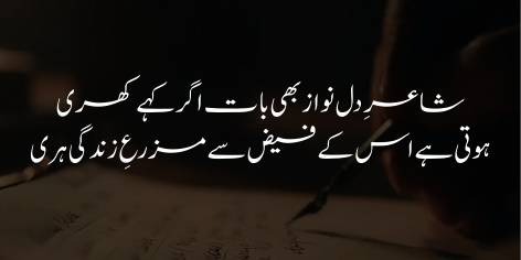 Murād yeh hai ke aisī shā’irī jo sirf alfāz kā majmū’a na ho balkeh ṣadāqat aur shā’ir kī haqīqī taṛap kā natīja ho, wohī logōñ ke dilōñ mein ghar kartī hai aur waqt guzarne ke sāth uss kī qadr o qīmat kam nahīn hotī.