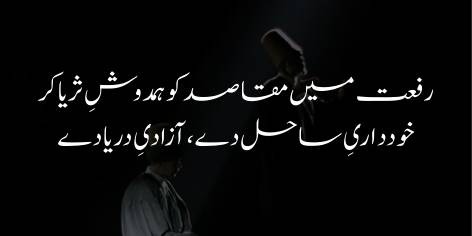 Iss iqtibās mein Allama Iqbāl Allāh Ta’ālā se Musalmānōñ ke liye buland maqāṣid aur ‘amalī āzādī kī du’ā karte hain. Iqbāl kehte hain ke un ke (Musalmānōñ ke) jo maqāṣid hain, un ko Surayyā (sitārōñ ke jhurmaṭ, ya’ni intihā’ī ūnchā’ī) kī sī bulandī ‘atā kar।