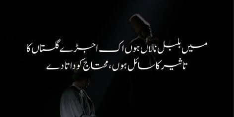 Chunānche, “Ay har fard kī ḥājat rawā’ī (zarūrat pūrī karne) wāle! Maiñ tujh se apnī (āwāz kī khō’ī huī) ta’sīr kā talabgār hūñ”। Murād yeh hai ke merī shā’irī aur pukār ab qaum ke dilōñ par asar nahīn kar rahī; lehāzā maiñ Allāh se du’ā kartā hūñ ke woh merī āwāz aur ‘amal mein woh quwwat aur asar paidā kar de jo dilōñ ko badal sake.