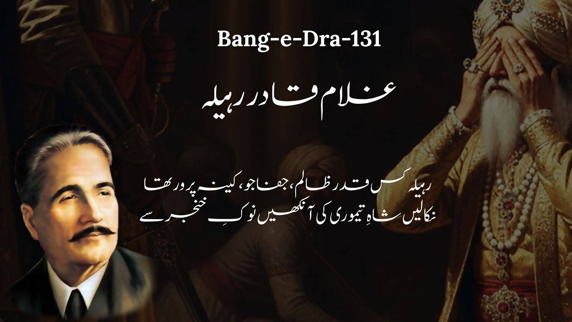 Iqbāl kehte hain ke Ghulām Qādir Rohillah bahut hī zālim, sitamgār aur kīnah parwar shakhs thā. Us ne apne bachpan ke dardnāk wāqi’e kā intiqām lete hue Mughal tājdar Shāh ‘Ālam Ṣānī kī āñkhein khanjar kī nōk se nikāl lī.