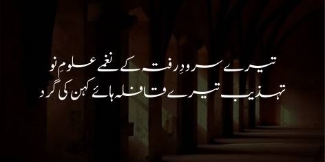 Iss iqtibās mein Allama Iqbāl Musalmān ko apnī tārīkh aur virse kī ‘azmat yād dilāte hain. Iqbāl kehte hain ke (Ay Musalmān!) Jo āj na’e murawwajah ‘ulūm hain, woh tere shāndār māẓī ke paidā kardah hain, aur jo āj kī tehzīb hai, yeh bhī tere māẓī kī tehzīb kā charbā (naql yā model) hai।