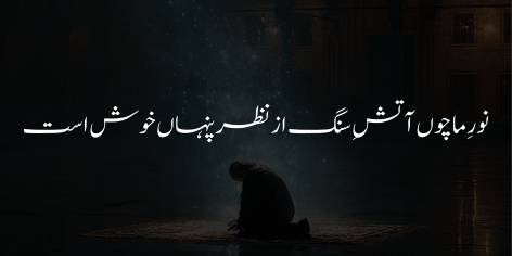 Noor-e-Ma-Chon Atish-e-Sang Az Nazar Pinhan Khush Ast”