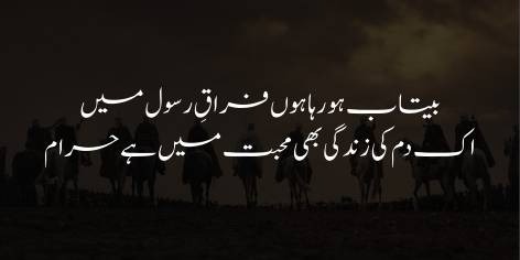 Naujawān ne apnī be-tābī kī wajah bayān kī: “Iss li’e ke maiñ tō Ānḥaẓrat ﷺ kī judā’ī mein be-tāb hō rahā hūñ aur maḥsūs kartā hūñ ke ‘ishq-e-Rasūl mein (jihād kī ḥālat mein) ek lamhe kī zindagī bhī ḥarām hai (ya’nī Rasūl Allāh ﷺ se jā milne kī jaldī mein maiñ duniyā mein mazīd rehnā gawārā nahīn kartā).”