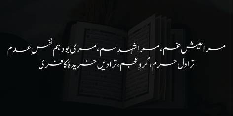 “In ḥālāt mein (‘ummat ke zawāl ke sabab) ‘aish-o-musarrat mere li’e gham-o-andōh kā rūp dhār chuke hain. Mere li’e ab shahad bhī zehar kī mānind talkh hō chukā hai.”