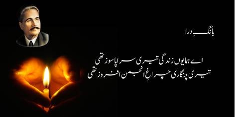 Ay Humāyūn! Tumhārī sārī zindagī (sarāpā) sōz aur taṛap se ‘ibārat thī. Tumhāre andar kī chōṭī sī chingārī bhī, jōsh aur ‘amal ke e’tibār se, pūrī mehfil ko roshan karne wālā chirāgh (chirāgh-e-anjuman afrōz) thi.