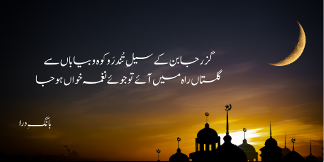 Dushmanon aur rukawaton ke liye tez-raftar sailab ban kar paharon aur janglon ko uboor kar le, lekin agar raaste mein koi baagh (apne log) aaye to us meethi nadi ki tarah ban ja jo geet gaati hui faida pahunchati hai.