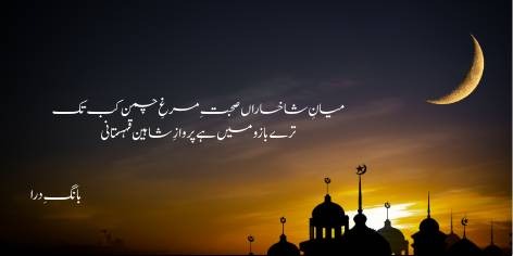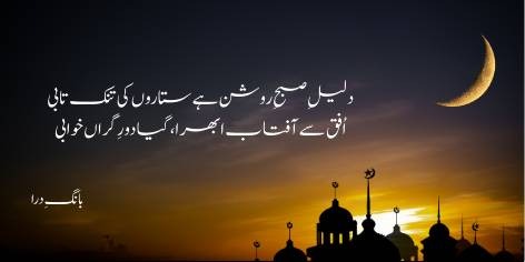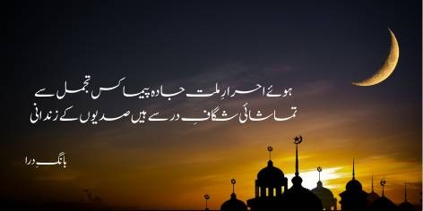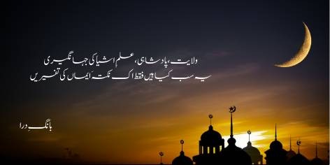 Asia ke Musalmanon ke dilon mein ek baar phir ishq aur muhabbat ki woh purani tarap jaag uthi hai jo bedari ki alamat hai. Ab yun mahsus hota hai jaise har taraf woh joshilay mujahid ghoray daura rahe hain jinhon ne shandar libas pehne hue hain, yaani ab Musalman dubara apne khoye hue waqar ke liye uth kharay hue hain.